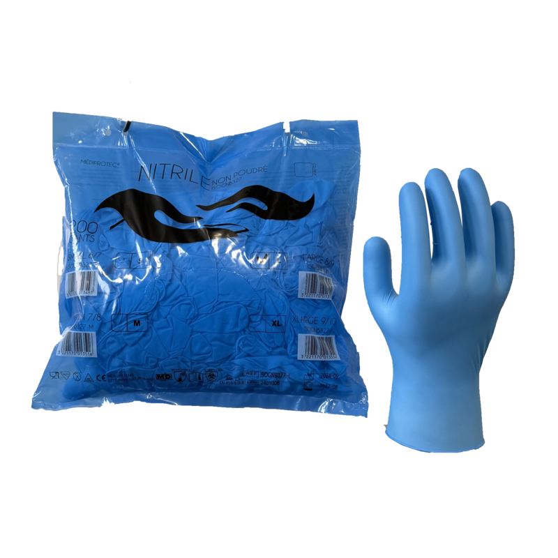 Gant nitrile bleu non poudré en sachet